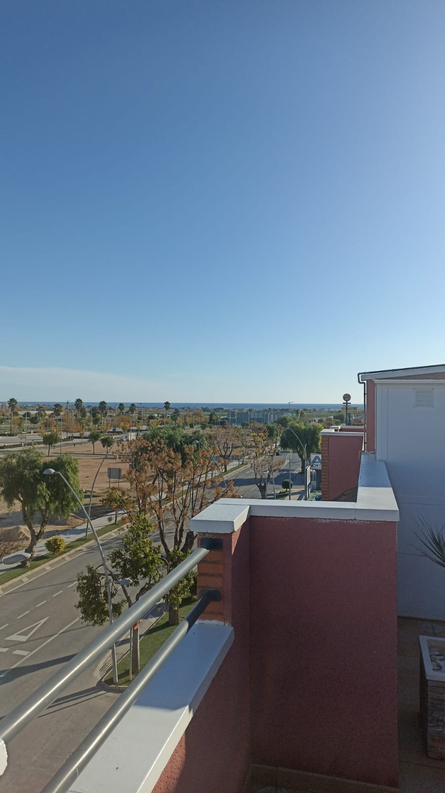 Ático a 4 km del mar, con mucha iluminación, terraza de 35 m2 y con vista libre al mar.